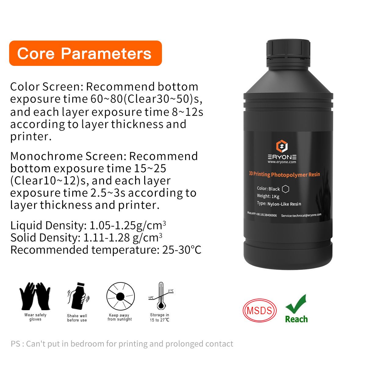 Monochrome Screen:Recommend bottom exposure time 15~25(Clear10~12)s,and each layer exposure time 2.5~3s according tolayer thickness and printer.