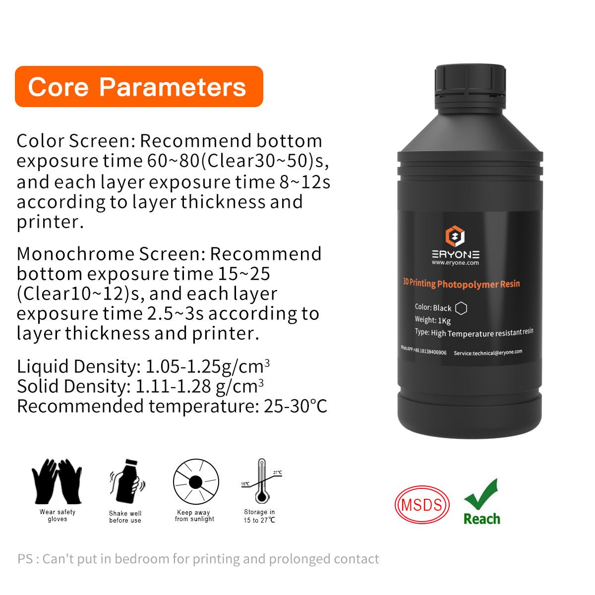 Monochrome Screen:Recommend bottom exposure time 15~25(Clear10~12)s,and each layer exposure time 2.5~3s according tolayer thickness and printer.