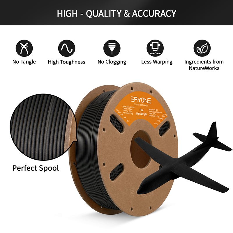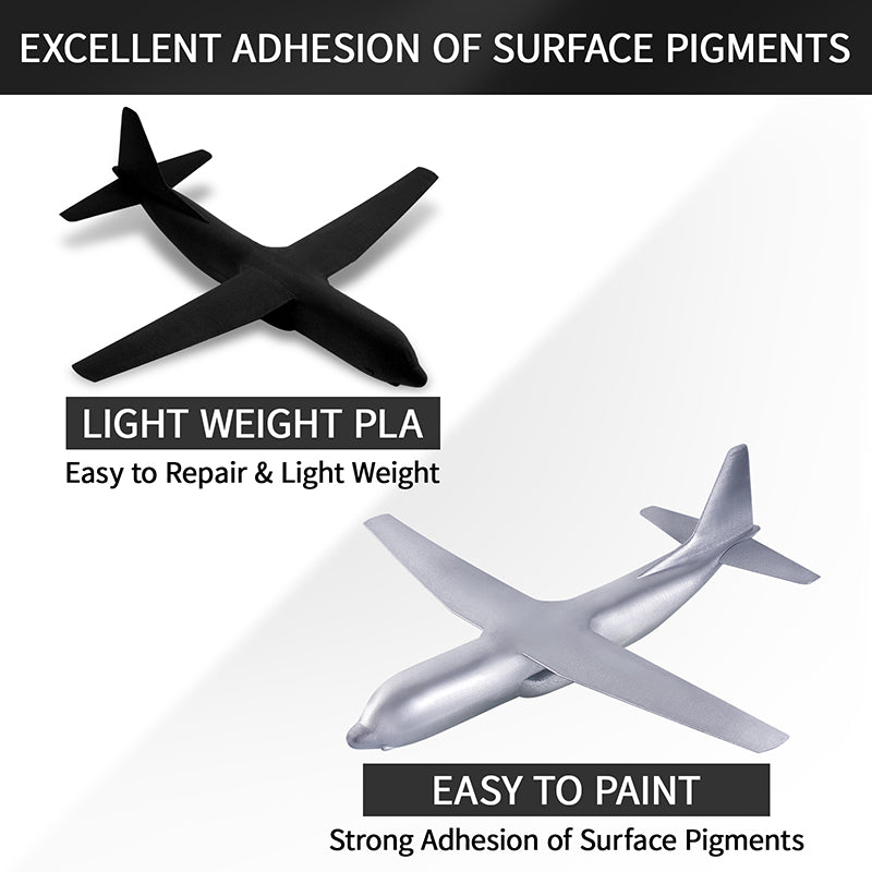 This PLA filament, with its low density, lightweight, excellent adhesion, and no warping and cracking, makes this filament the perfect choice for model airplanes, boats, and cosplay wearable parts.