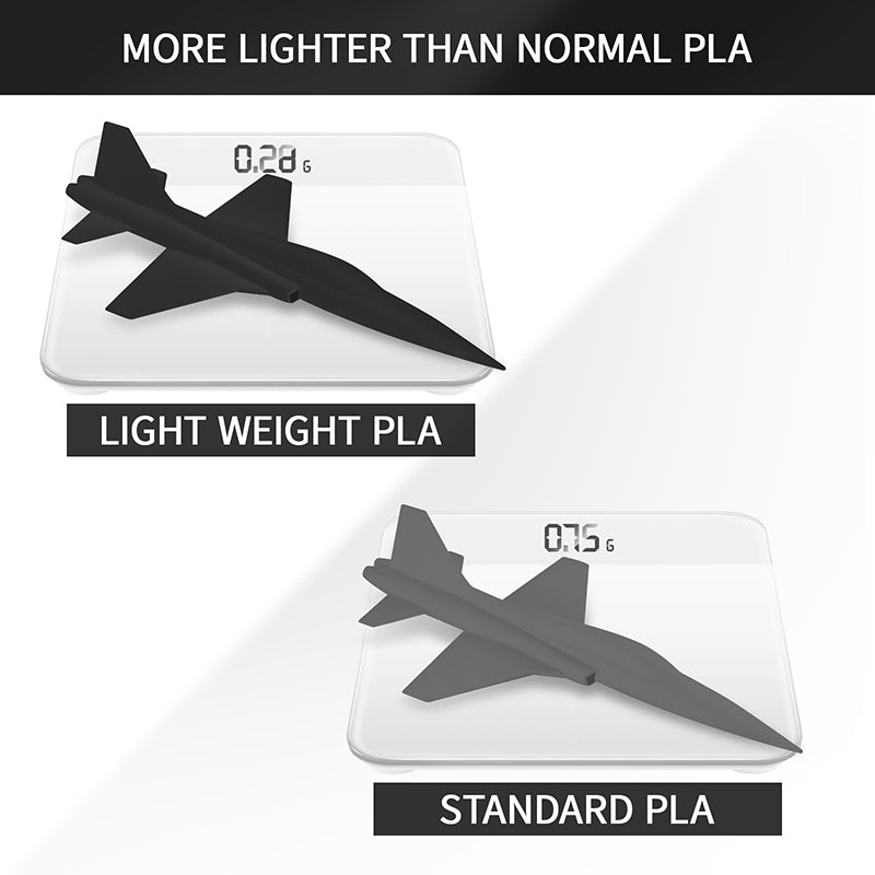 - Light-weight PLA uses a special modification method and nano-foaming technology to greatly improve the foaming multiplier of PLA materials without affecting the printing effect of PLA materials, and the foaming multiplier can reach over 200%.