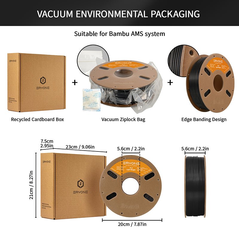 Light-weight PLA filaments use a nano-foaming technology to greatly improve the foaming multiplier of PLA materials without affecting the printing effect of PLA materials. Makes filament less dense and light.